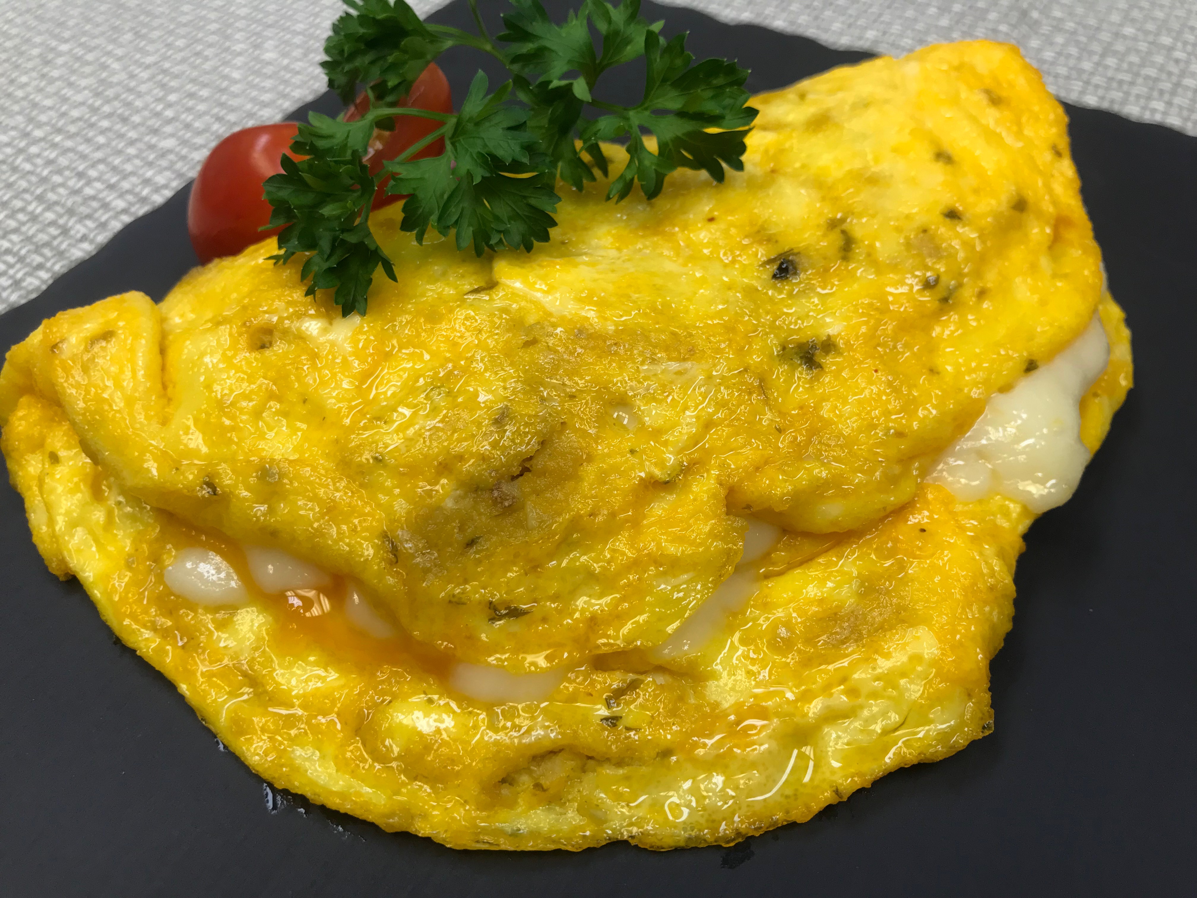 - Spread cheese over half of the eggs and fold the other half to cover cheese